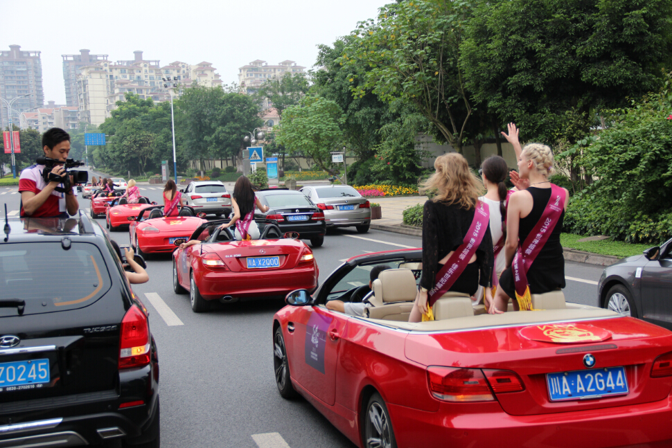5月21日上午10:00-12:00,世界超模乘坐敞篷跑车,沿泸州主城区巡游,让市民一睹五洲佳丽天仙风姿。