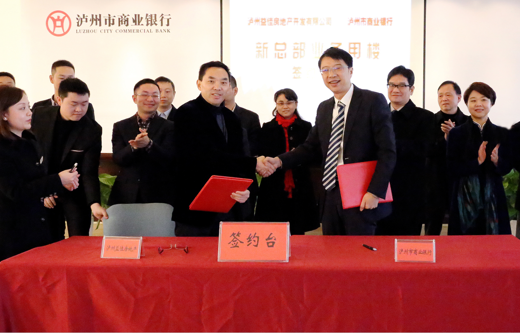 泸州市商业银行董事长游江与佳乐集团董事长熊国铭代表合作双方签约。泸州金融中心9号楼将成为泸州市商业银行新的总部大楼。