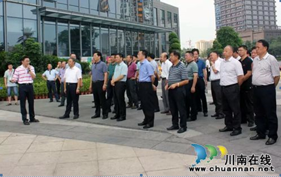 宜宾市委书记刘中伯(前排左三),市委副书记、市长杜紫平(前排左四),市人大常委会主任陆振华(前排右一),市政协主席葛燎原(前排右三)带领下,莅临泸州金融商业中心【佳乐世纪城】考察
