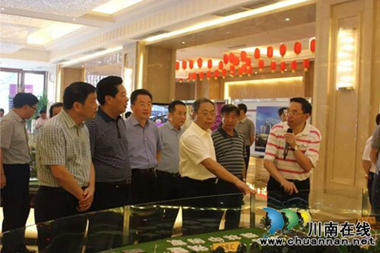 8月14日上午,宜宾市党政代表团一行60余人,在宜宾市委书记刘中伯,市委副书记、市长杜紫平,市人大常委会主任陆振华,市政协主席葛燎原带领下,莅临泸州金融商业中心佳乐世纪城考察。泸州市委书记蒋辅义,市委副书记、市长刘强,市政协主席喻双,市委副书记曹建国等市领导陪同考察。