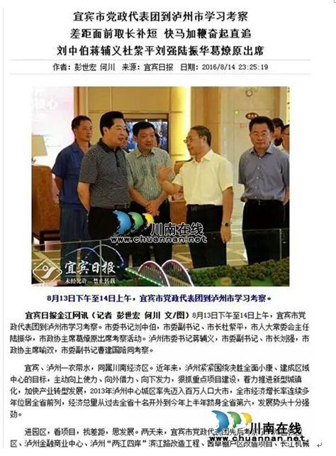 在现场察看泸州金融商业中心的建设成果后,刘中伯感慨地说:泸州城市建设走在了宜宾前面,差距就是发展空间,差距就是发展动力,宜宾要建设川南区域中心大城市,必须在新型城镇化上奋起直追。(完)