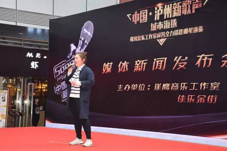 此次选秀活动由崔鹰音乐工作室与佳乐金街共同举办,赛事空前巨大。此次活动方还邀请了西南医科大学、灵通学校、四川化工技术职业学院、泸州职业技术学院、海鱼网咖、钱柜KTV、哇哈哈、宾果儿、旗豪歌城、爱植说音乐餐吧及泸州各大主流媒体记者莅临此次盛会,共同见证了中国·泸州新歌声海选启动仪式的璀璨时刻,更有2013年中国好声音省区冠军崔鹰亲临现场助阵,将整个活动推向了高潮。
