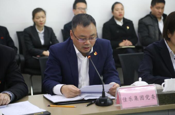 ??? 2018年11月23日,佳乐集团“两新联千村·党建助振兴”行动结对签约仪式在佳乐世纪城营销中心会议室举行,江阳区两新工委专职副书记余杨、江阳区非公党委专职副书记宋航、佳乐集团党委副书记、副总裁贺军出席签约仪式并讲话。三个签约村的支部书记、所在乡镇领导和佳乐集团全体党员参加了签约仪式。