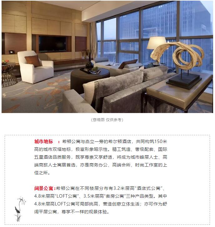 希顿公寓位于佳乐世纪城·欢乐汇,毗邻中心广场、金融中心、绿韵等,与希尔顿酒店同步设计建设,共同构筑150米高的双塔城市地标。