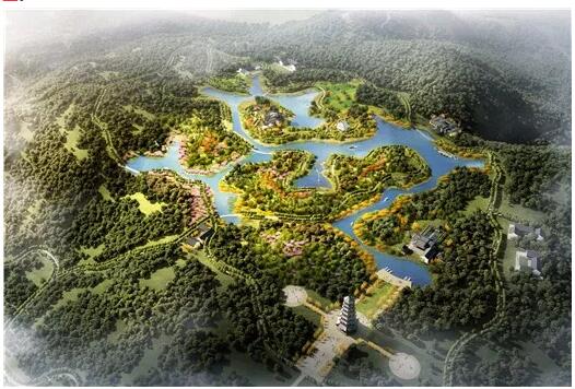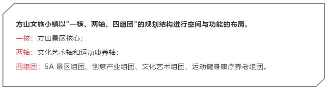 规划空间上特别注重山、湖、江的关系,方山景区核心与周边小镇功能区的关系,建立山上朝圣揽胜、山下游玩健身、江上观景的大方山文旅体系,以生态优先、文化塑魂的设计理念,整体构建大方山景区。以 5A 景区为设计标准,以佛文化为核心,打造联动山景、湖景、江景的大方山旅游体系