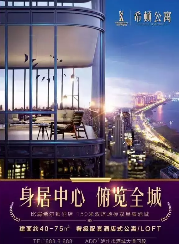 希顿公寓在泸州金融商业中心【佳乐世纪城】内, 金融中心、万象汇、佳乐金街、欢乐汇等商务、商业配套醇熟,汇聚上千个知名企业及国际国内一线品牌,拥有城市群领先的商业水平,尽享中心繁华。同时,凭借超强商业吸附力,引入庞大客群,极大提升市场活跃度,便利资产流动。让泸州真正成为创新产业、投资发展的热土和福地。